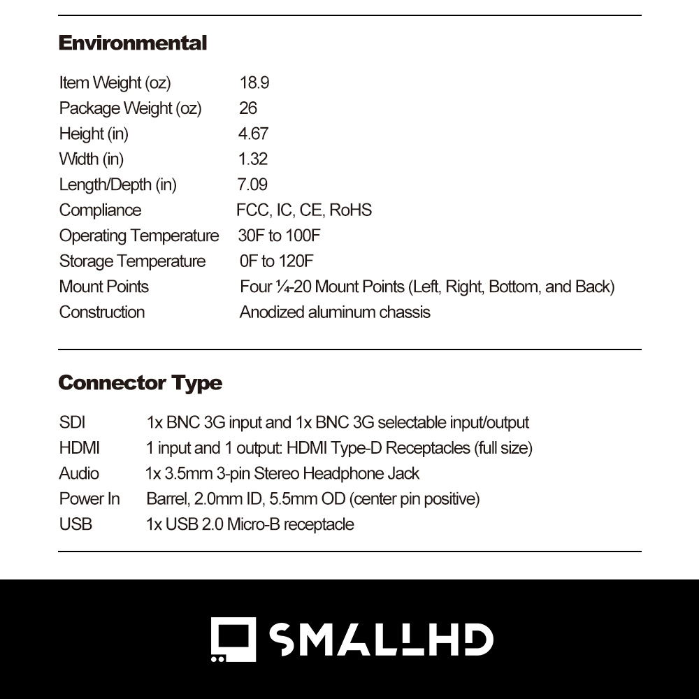 Input: SDI, HDMI, Micro USB